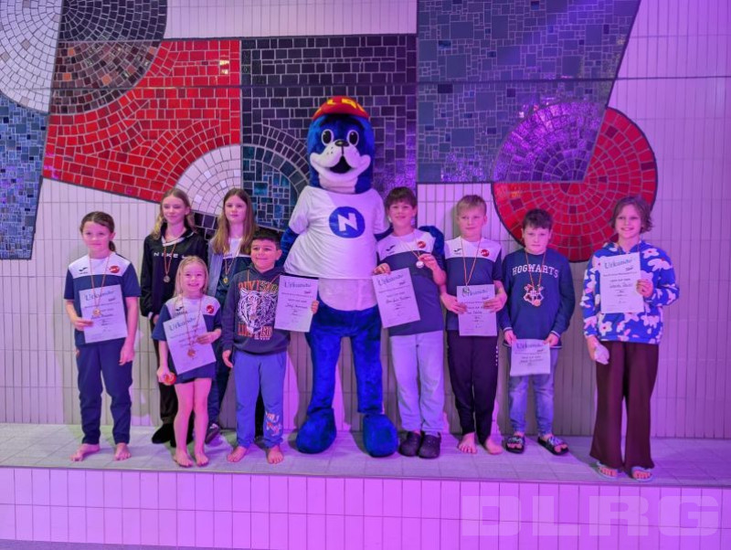 Neben den sportlichen Leistungen sorgte ein besonderer Gast für Begeisterung: Seehund Nobbi, das DLRG-Maskottchen, überraschte die jungen Sportler:innen im Hallenbad und überreichte jedem Kind bei der Siegerehrung ein kleines Geschenk. Das Trainerteam zeigte sich stolz auf die Leistungen ihres Nachwuchses und blickt zufrieden auf einen rundum gelungenen Wettkampf zurück.